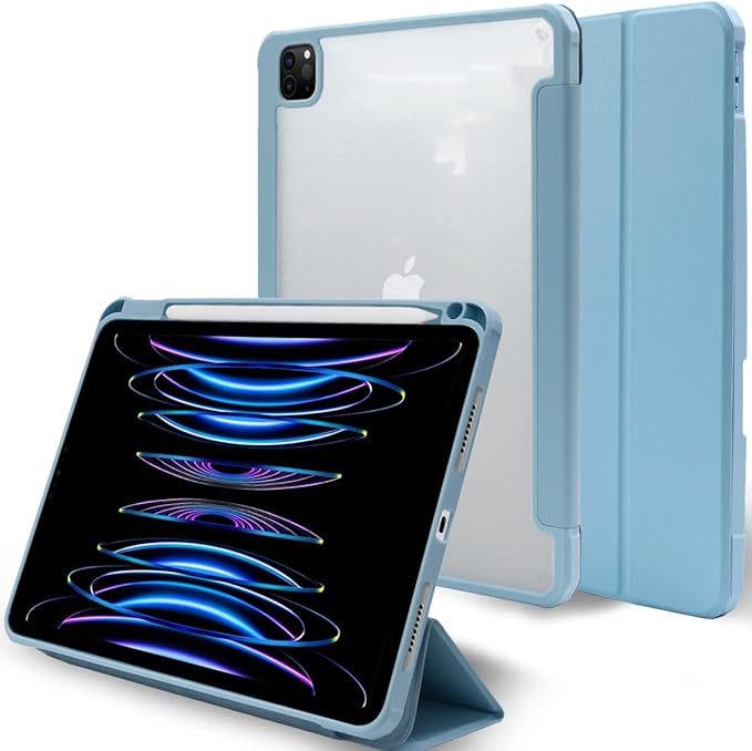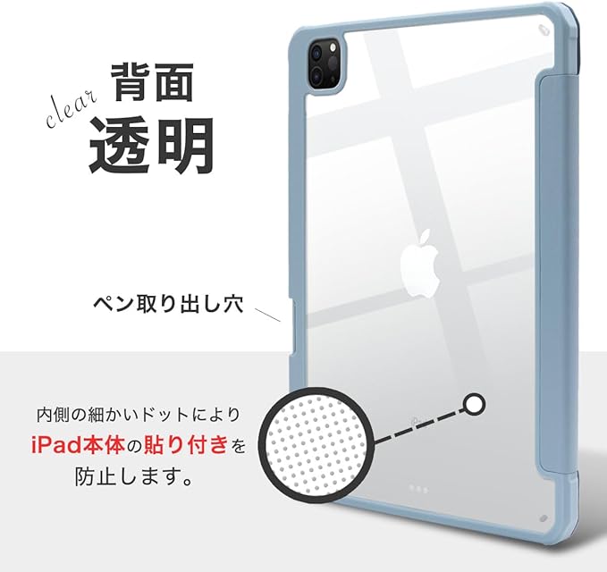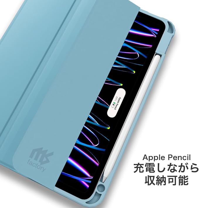MS factory iPad Pro 11インチ 第4/3/2世代 用 ケース 2022 2021 2020 背面透明 ペンシル収納 カバー Pro 11 第4世代 第3世代 第2世代 耐衝撃 軽量 スタンド オートスリープ Apple Pencil 充電対応 コーンフラワー 水色 IPDP11/4-NO-DET-LSK