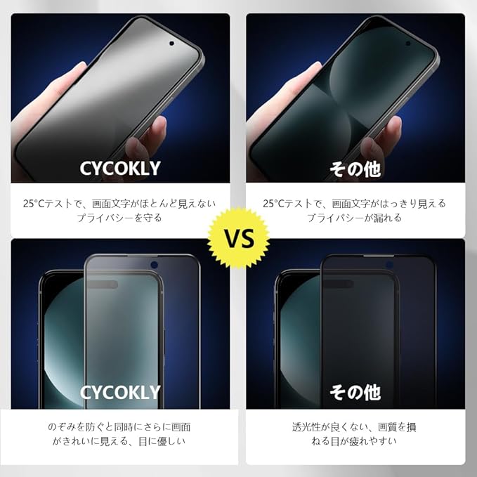 CYCOKLY iPhone15pro max用(6.7インチ)ガラスフィルム 【覗き見防止+アンチグレア】強化ガラス 液晶保護フィルム サラサラ感 ガイド枠付き