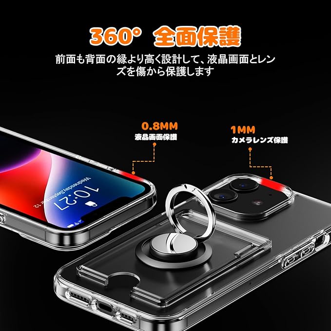 iPhone 11 ケース 透明 カード収納 リング付き 耐衝撃保護カバー アイフォン11 スマホケース クリア シリコン スタンド機能 耐久 滑り止め (クリア)