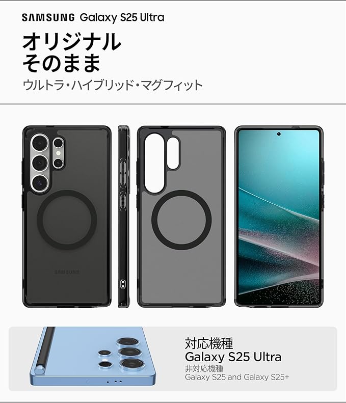 Spigen 【創業18年の技術力】 Galaxy S25 Ultra ケース MagSafe対応 半透明 黄変防止 ストラップホール 米軍MIL規格 ウルトラ・ハイブリッド・マグフィット ACS08960 (フロスト・ブラック)