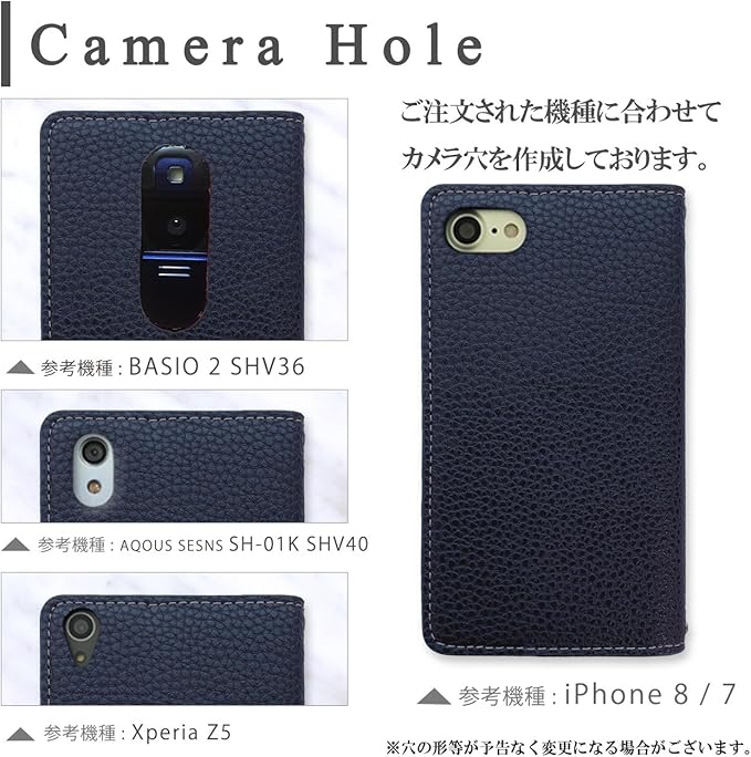 機種に合わせた開口部が開いております。電源ボタン等はケースの上から押す仕様となっております。ご了承ください。手帳型ケースはスマホ本体より大きめの作りになっております。