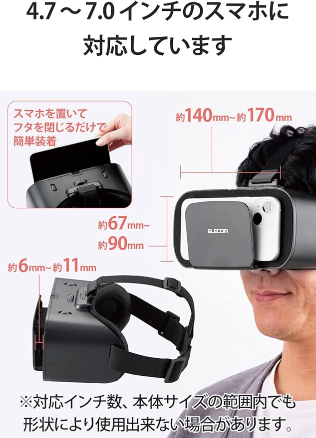 エレコム VRゴーグル & リモコン 360度 目幅調整 ピント調整 メガネ対応 非球面光学レンズ採用 【4.7~7.0インチ以内の スマホ/iPhone 対応】 ブラック VRG-X03RBK