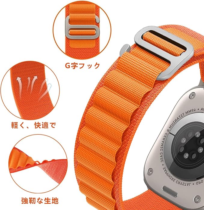 【対応機種】:このトレイルループはApple Watch Ultra 49mm,Apple Watch Series SE /9/8/7/6/5/4/3/2/1 の45mm 44mm 42mm に対応できます。130mm?220mmの手首に対応しますので、手の細い方にもフィットします。
