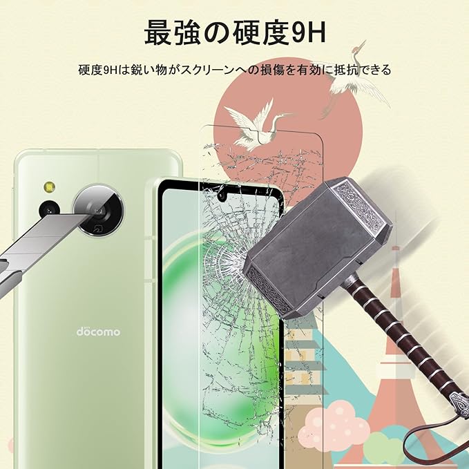 【日本旭硝子素材-9H硬度】AQUOS sense8 強化ガラス 保護フィルムは日本旭硝子素材を採用します。400℃の焼戻炉で4時間加熱し、二次強化し、硬度が9H硬度に達しています。 ポケットの中の鍵やコインなど、様々なものからスマートフォンを保護します。 防爆、耐スクラッチ性、落下防止。ヒント:二次強化後の旭硝子は、靭性が高く、割れにくいです。ガラスの表面に防爆PET層を追加し、万が一、衝撃を受けて割れても飛散せず、ご自身の安全を守ります。