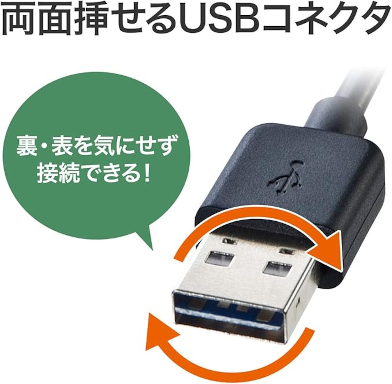 USB Aコネクタ(オス)の表・裏を気にせず「両面挿せる」USBケーブルです。