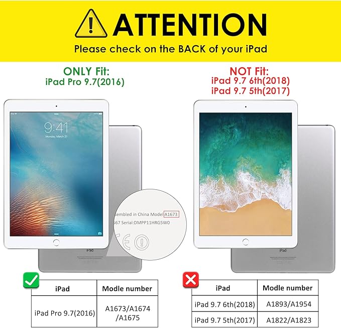 【対応機種】適用のiPad型番:A1673/A1674/1675。お使いのiPadの裏面にあるモデル番号を確認してください。マグネット内蔵、オートスリープとオートウェイクアップ機能付き。