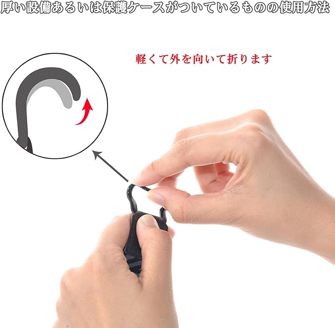 ストラップの取り付けや取り外しが簡単ー ヒント: 留め具を少し強めに広げることで、厚めのタブレットやカバー付きスマホにも 取り付けることができます。