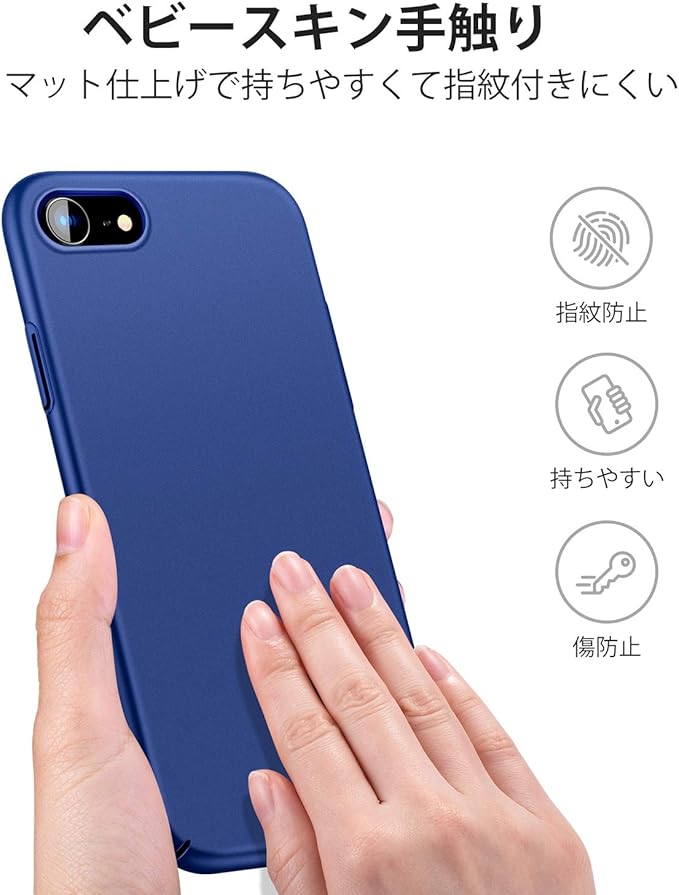 【超薄・マット質感】TORRAS iPhone se3 ケース 第3世代 iPhone se 2・8・7 ケース 薄型 4.7インチ 対応 PC [ ガラスフィルム付属] 指紋防止 擦り傷防止 耐衝撃カバー (ネイビーブルー) Wisdom Series