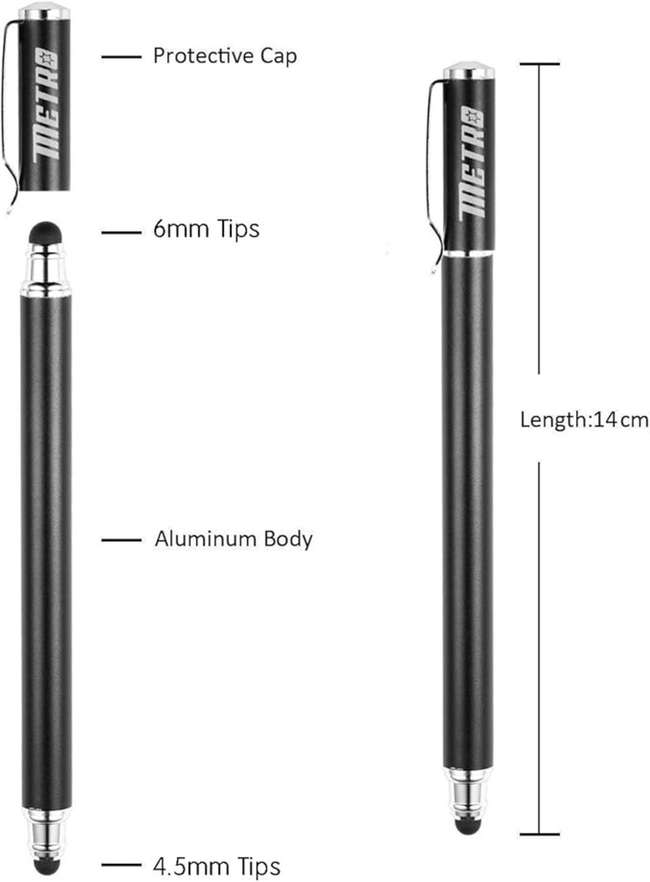 Metro タッチペン スタイラスペン タブレット touch pen iPad iPhone Android 高感度 スマートフォン スタイラス スマホペン 軽量 touch ペン 細/太両側使る 交換用ペン先 仕事 学習 stylus pen(ブラック)