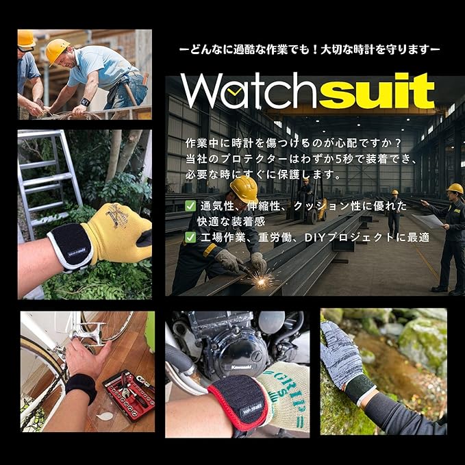 《Watchsuit黒/黒紺》腕時計やスマートウォッチを5秒で簡単装着する最強の保護プロテクター、Apple Watch・GARMIN・Fitbitを仕事やスポーツ、プールで強力にカバー、信頼のメイドインジャパン40mm/42mm/44mm/45mm/49mm対応