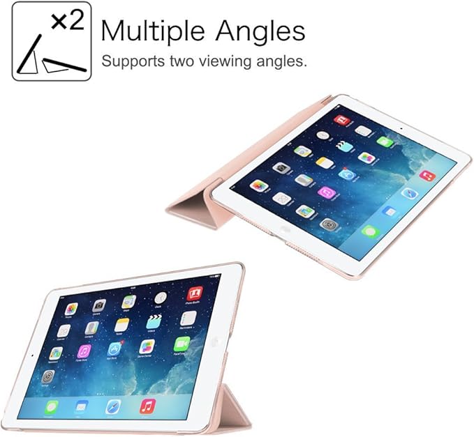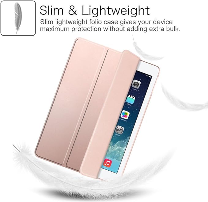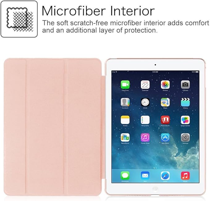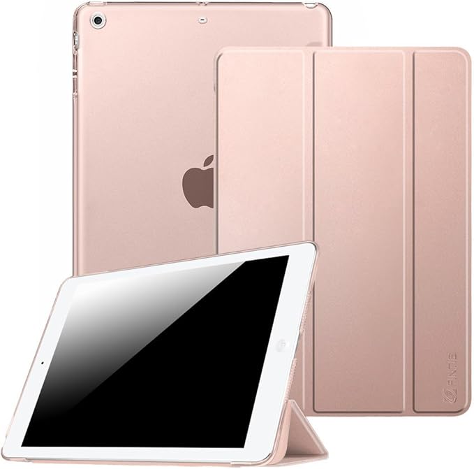 Fintie iPad Air2 / iPad Air ケース クリア バックカバー 軽量 薄型 タンドタイプ PUレザーフロントケース 傷つけ防止 オートスリープ機能付 Apple iPad Air 2013 / iPad Air2 2014 スマートケース (ローズゴー