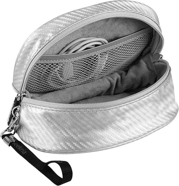 Geekria ケース ヘッドホンケース 互換性 バッグ 旅行用 ケース ゼンハイザー Sennheiser HD 450BT, PXC 550-II, MOMENTUM 3, HD 4.50, ジェイビーエルJBL E40, E40 BT, E55 BT, Tune 570BT, Tune 670NC, Everest 300, Everest 310, スカルキャンディSkullcandy Hesh 3, Hesh Evo に対応 収納ポーチ付き (銀)