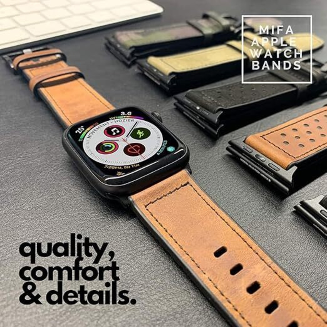 Mifa - Ultra Series 8 7 45mm 6 SE 5 4 44mm アップルウォッチレザーバンド用Apple Watch 革バンド Band Hybrid iwatch交換用バンドストラップと互換性のあるハイブリッドスポーツレザーバンド ブラウン- 49mm / 45mm / 44mm / 42mm1