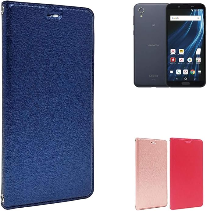 シズカウィル AQUOS sense2 ケース カバー 手帳型 SHV43 SH-01L SH-M08 スリム ケース ディープブルー 1個入り