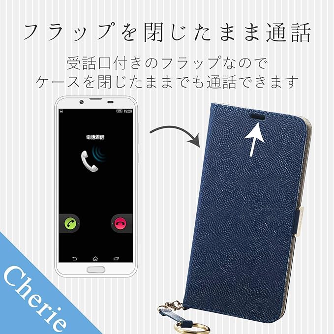 エレコム AQUOS sense2/レザーカバー/女子向/磁石/ストラップ付/ネイビー
