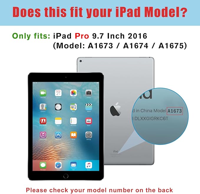 対応端末:2016 iPad Pro 9.7"(A1673 A1674 A1675)のみ、その他の型式に適用されません。ご購入前、ご設備のモデル番号をご確認ください。