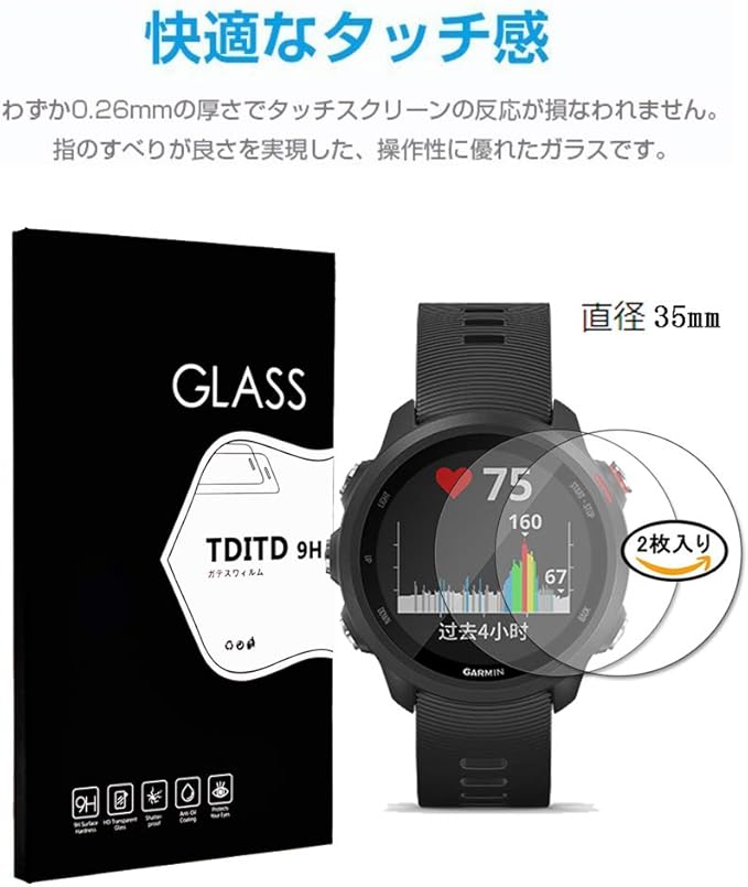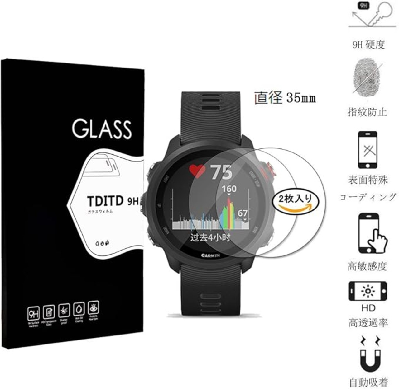 TDITD ガラスフィルム【2枚入】 Garmin ForeAthlete 245 用/ForeAthlete 245 Music 用 ガラスフィルム 日本旭硝子素材採用 高透過率 薄型 硬度9H 飛散防止処理 2.5D ラウンドエッジ加工 自動吸着 GARMIN ガーミン ランニングウォッチ 用 液晶保護フィルム フィルム 保護フィルム ガーミン 245 245 Music 用