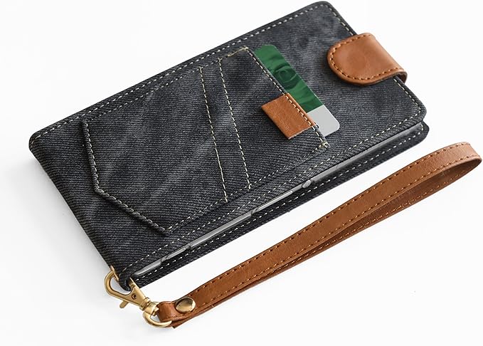 [楽々ショップ]AQUOS R3 SH-04L docomo/SHV44 au/softbank 用 縦型レザーケース 縦開き 上下開き スマホ カバー レザー スタンド カード収納 デニム ジーンズスタイル AQUOS R3(SH-04L/SHV44) ストラップ付き 保護フィルム付き SH-04L-PULF-W96-DD-Y1 ブラック
