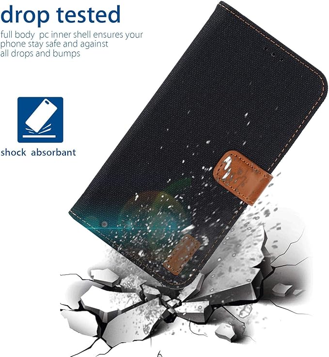 【Viesa】新型モデル デニム デザイン ケース 手帳型 AQUOS sense lite SH-M05/SH-01K/SHV40/basic 702SH 対応 SHARP 手帳ケース (ブラック) スマホケース シャープ アクオス センス ライト アクオスshv40 BLACK