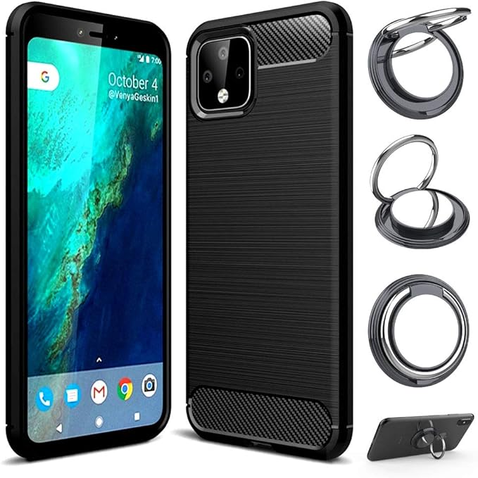 【スマホリングスタンド付】【GTO】Google Pixel 4 ケース カバー Qi充電対応 ワイヤレス充電対応 炭素繊維 TPU シリコン素材を使用した ケース 保護バンパー アンチグレア素材を使用した耐水、防指紋、散熱加工の超薄型、スタイリッシュバンパーケース ブラック