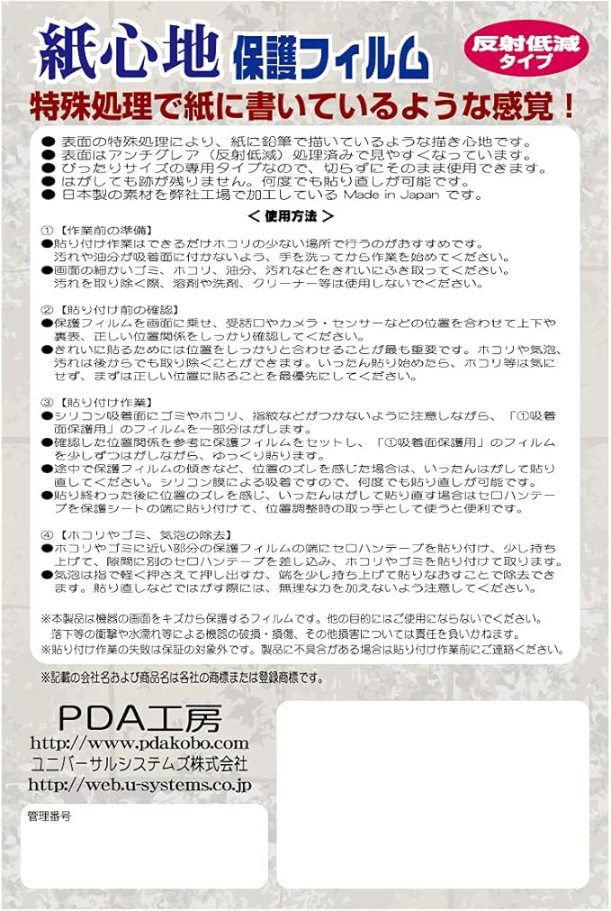 PDA工房 AQUOS sense3 (SH-02M/SHV45/SH-M12)対応 紙に書くような描き心地 保護 フィルム [前面用] 反射低減 日本製