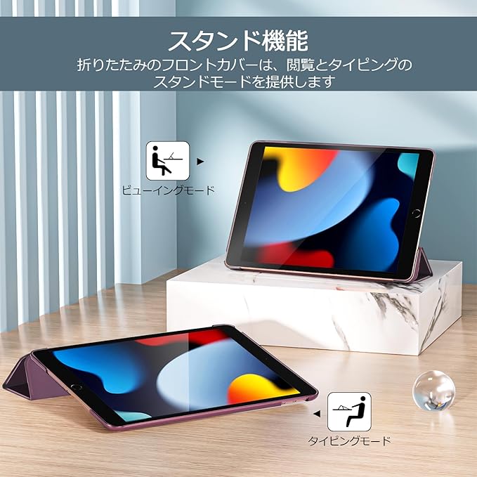ProCase iPad 9/8/7 ケース (2021 2020 2019) 半透明バックカバー スマートカバー 軽量 三つ折りスタンド iPad 10.2" 対応 - パープル