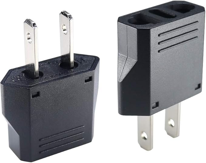 国内用変換プラグ ヨーロッパ(C)/イタリア (L)タイプ → 日本(A)タイプ 国内で海外の電気製品が使える 2個セット(黒)