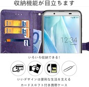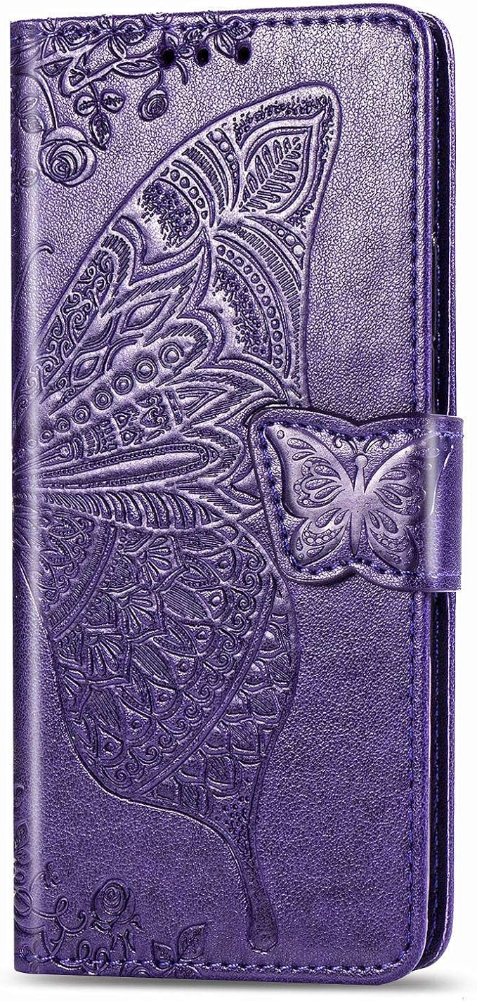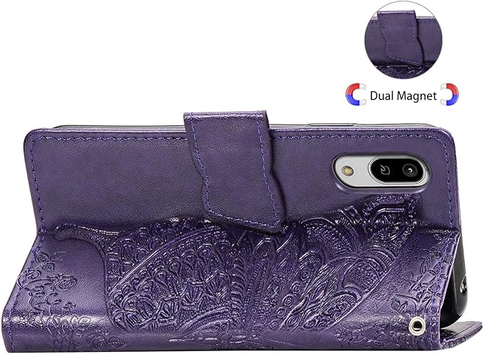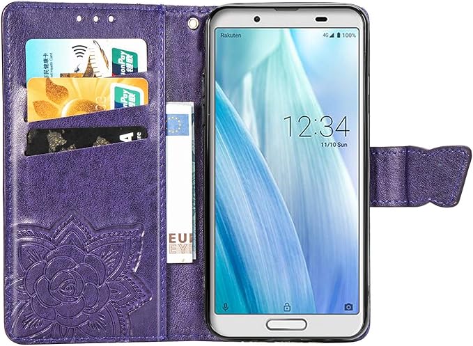 対応AQUOS sense3 / sense3 lite / sense3 basic/Android One S7 [SH-02M / SHV45 / SH-RM12] ケース 手帳型 ノートブック型携帯電話保護カバー多機能携帯電話ホルスター財布携帯電話ホルダーバンプパターンテクスチャ耐久性摩擦耐性携帯電話ケース男性と女性に適した多色オプション (バタフライパープル)
