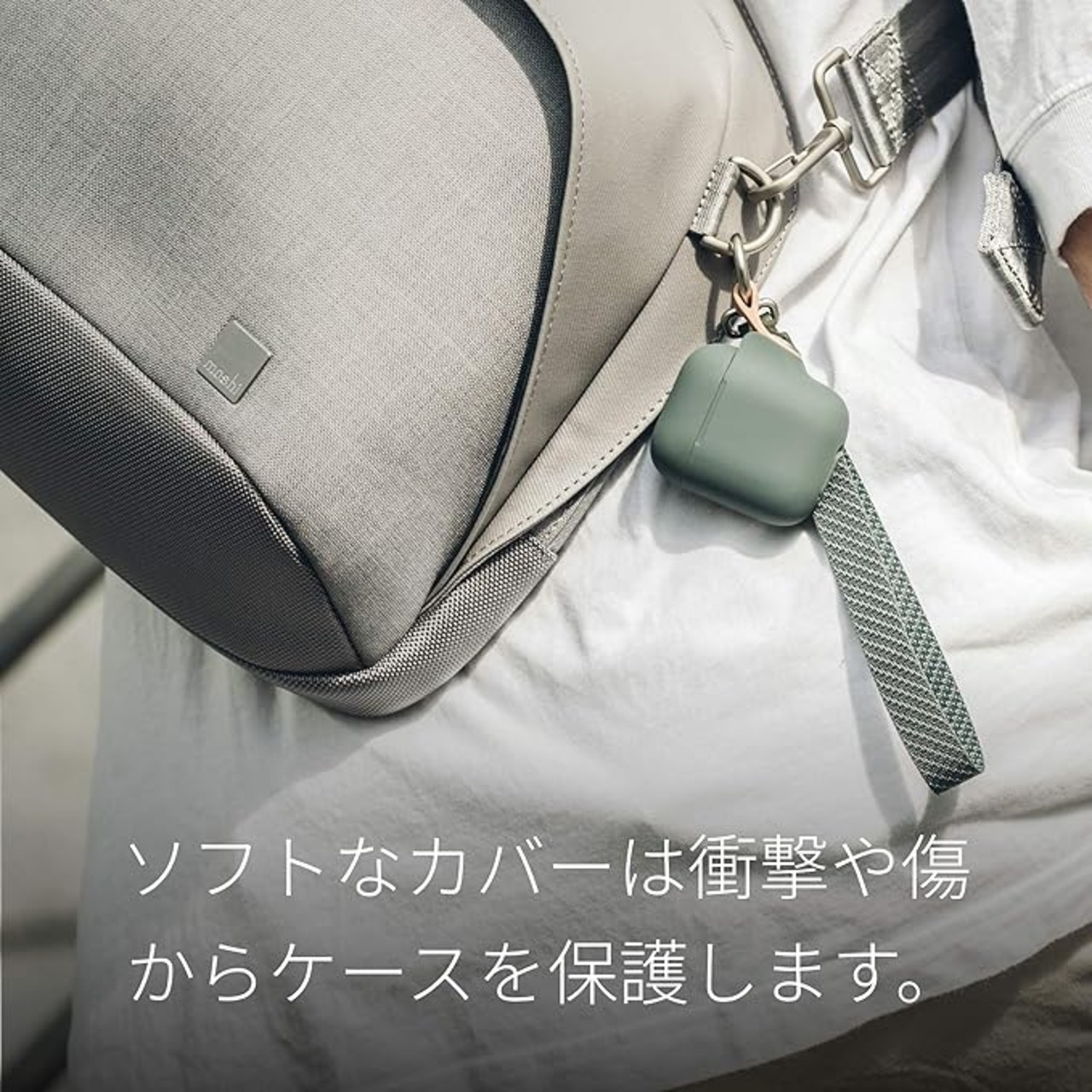 moshi Pebbo for AirPods Pro (エアーポッズプロ用ケース リストストラップ付属) (Mint Green) スタイリッシュデザイン Lightning端子・ヒンジ部を保護 ワイヤレス充電対応 環境にやさしいBPAフリー素材 製品登録により10年グローバル