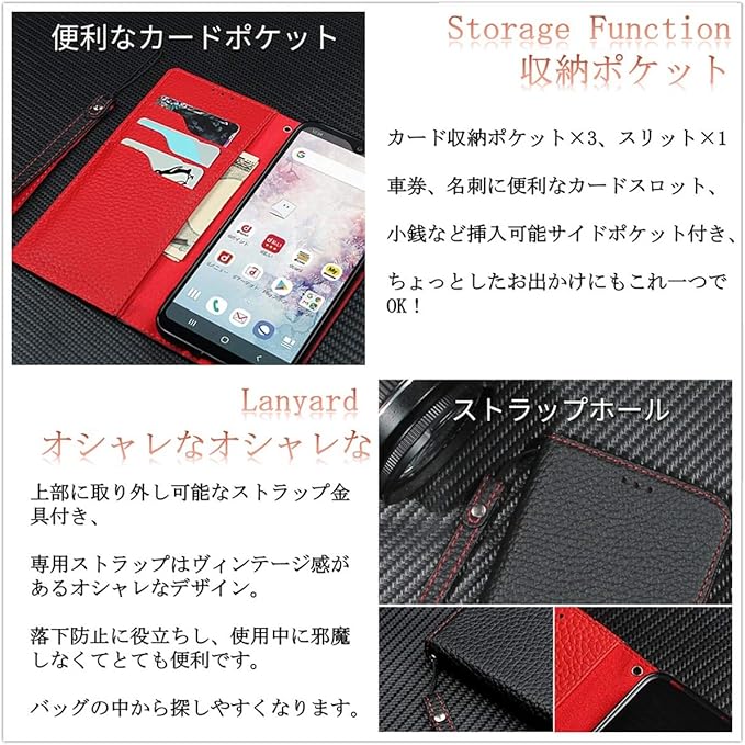 レザー アクオス センス3 ケース 本革 Aquos Sense 3スマホケース カードポケット Jaorty 内蔵マグネットカードホルダ付き 本革 カバー Aquos Sense 3ケース 手帳型 スタンド機能 超薄型 人気 おしゃれ-ブラック