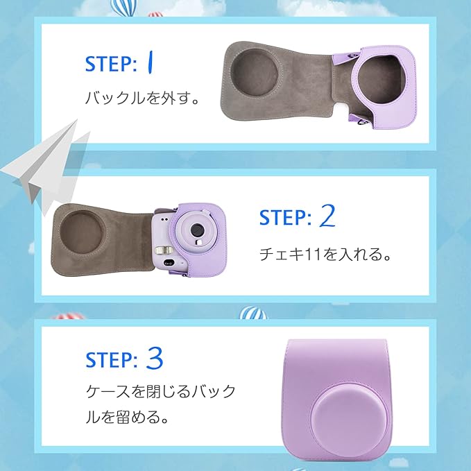 kinokoo チェキケース,Fujifilmチェキinstax mini11/mini 8/mini8+/mini9ケース instax mini11/mini 9/mini8/mini8+カメラケース チェキ保護ケース ショルダーストラップ付き(ライラックパープル)