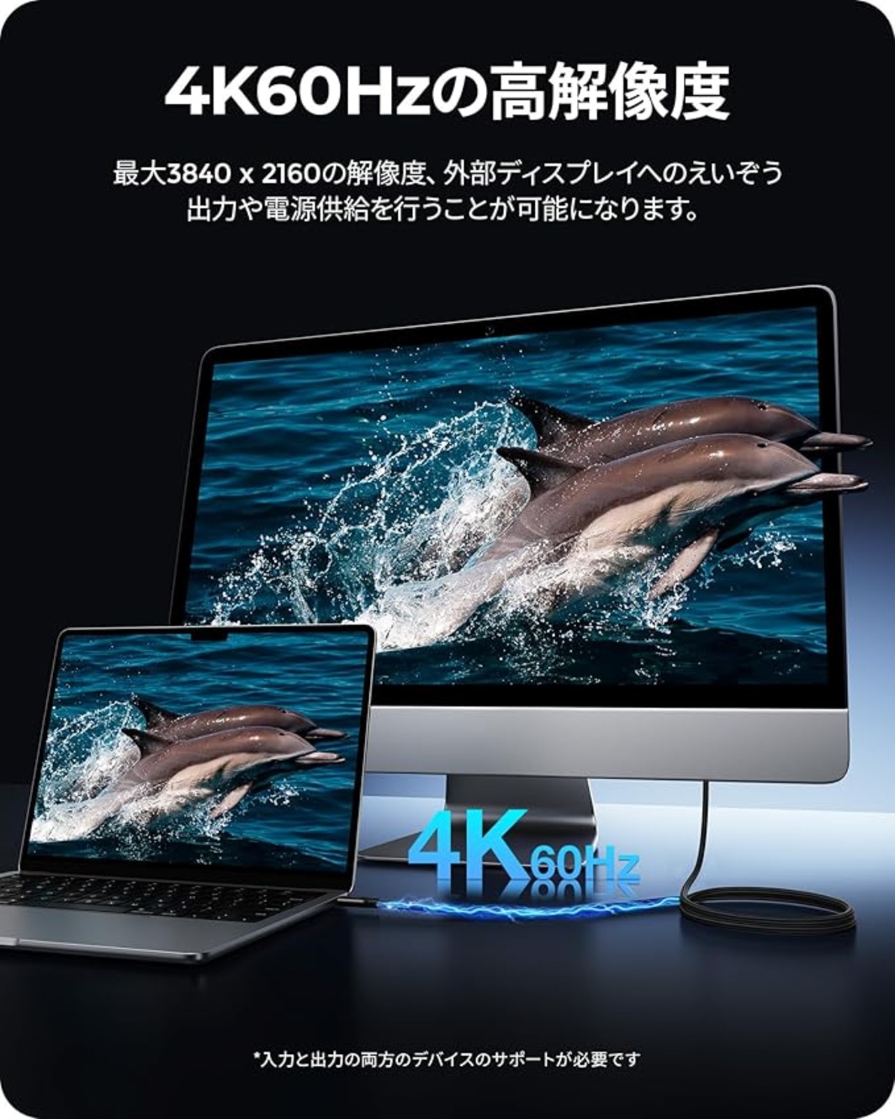 【10Gbpsデータ通信&4K@60Hz高解像度】10GbpsのSuperSpeed規格に対応し、オーディオやビデオ信号だけでなく、HD動画の送受信まで数秒で完了します。*外付けHDDを認識できません。本製品はDP Altモードのデバイスでのみ動作し、最大3840 x 2160(4K@60Hz)の解像度を可能にします(出力機器とモニターにDisplayPort Alternate Modeが必要)。