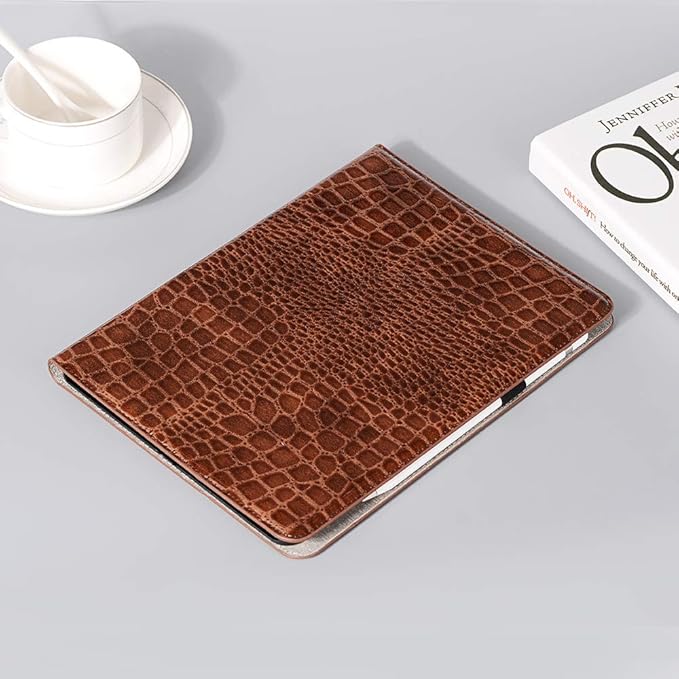 iPad Pro-6,5,4,3世代(11'')ケース,iPad Air-6,5,4世代(11'',10.9'')ワニ人工皮革,智能的スリープ機能付きカバー,ブラケット,対応ペン収納可 - 褐色
