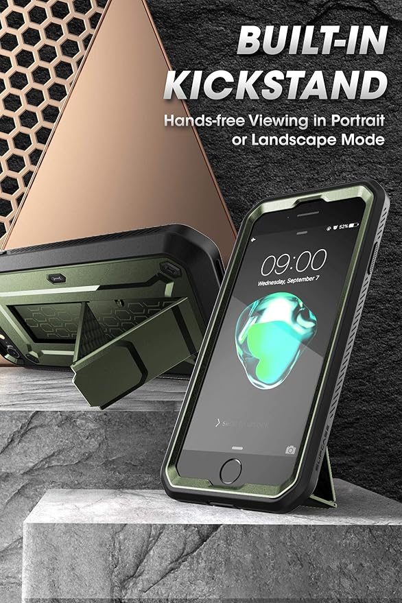 SUPCASE iPhone SE3(第3世代) 2022 SE(第2世代) /iPhone8 /iPhone7 ケース 対応 2020 新しいカバー 液晶保護フィルム と腰かけクリップ付き 米国軍事規格取得 耐衝撃 防塵 二重保護 UBProシリーズ メタリック・グリーン