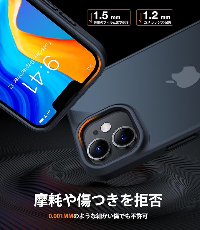【衝撃分散構造 耐久性】 TORRAS iPhone 12 用 ケース iPhone 12 Pro 用 ケース 半透明 衝撃吸収 マット感 ストラップホール付き ボタン付属 黄ばみなし レンズ保護 6.1インチ アイフォン12 用 12 Pro用カバー ブラック「Guardian Series」