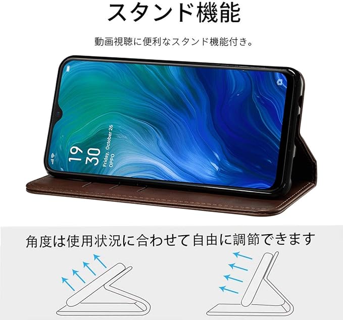 OPPO Reno A ケース 手帳型 高質PUレザー OPPO Reno A カバー Case 耐衝撃 皮革 内蔵マグネット開閉式 ベルトなし スマホケース おしゃれ カードポケット スタンド機能 便利 スプラット同梱 携帯ケー
