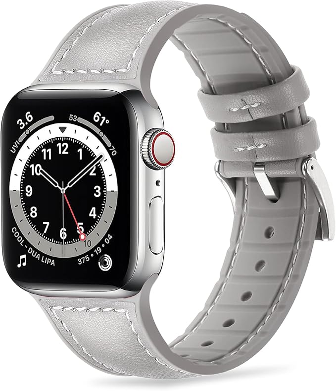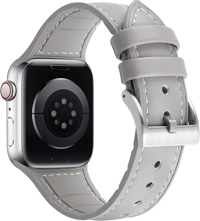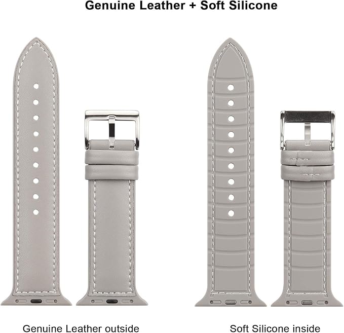 コンパチブル Apple Watch バンド 41mm 40mm 38mm、コンパチブルiWatch通用ベルト Apple Watch SE2 SE Series 9/8/7/6/5/4/3/2/1に対応 レザーシリコン一体型交換ストラップ (38mm 40mm 41mm、グレー)