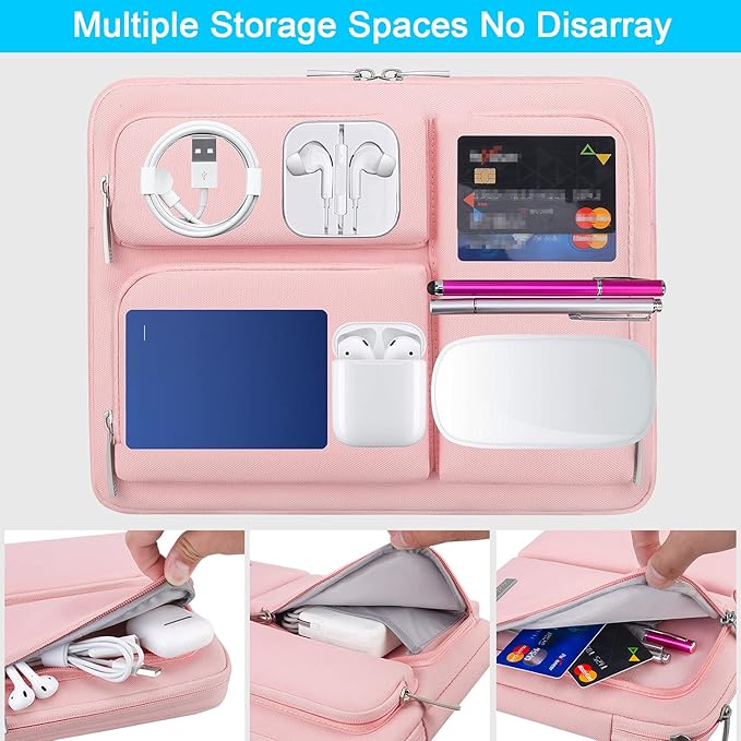 Lacdo 360 保護ラップトップスリーブケース 対応機種 13インチ 新しい MacBook Air M4 A3240 2025, M3 A3113, M2 A2681, M1 A2337|13インチ MacBook Pro M2/M1 A2338 A2251|13インチ iPad Air M3 / iPad Pro M4 コンピュータバッグ、ピンク