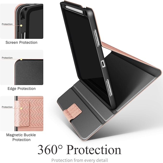 auaua iPad Air 11 インチ M3/M2 (2025/2024) ケース iPad Air 第5/4世代 ケース10.9インチ 2022/2020 ペンシル ホルダー収納 オートスリープ機能 ひび割れない PUレザー製スマート (ピンク)
