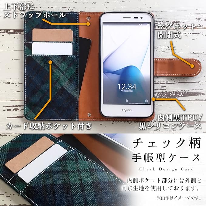 シンプルスマホ5 A001SH ケース 手帳型 カバー 手帳型カバー 手帳 スマホケース チェック柄 オーロラグリーン シンプルスマホ5ケース シンプルスマホ5カバー シンプルスマホ5手帳 シンプルス