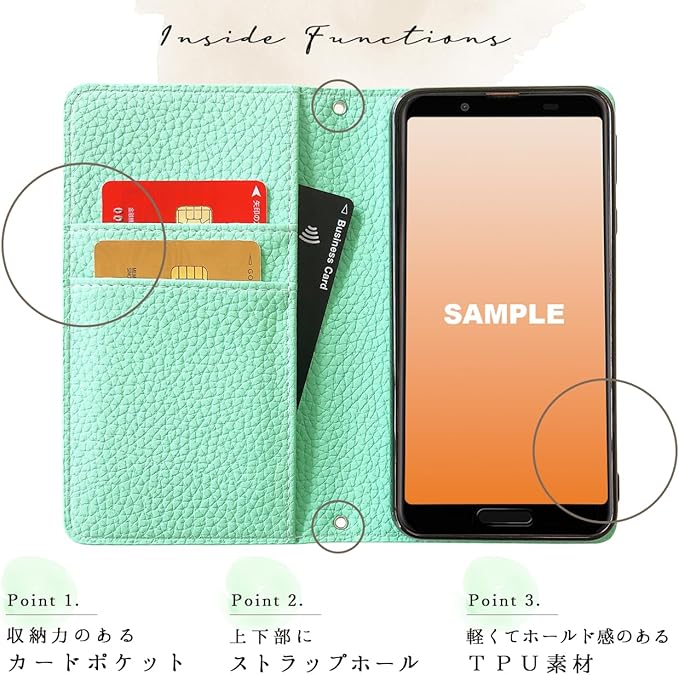 シンプルスマホ5 A001SH ケース 手帳型 カバー スマホケース A001SHケース A001SHカバー シンプルスマホ5ケース シンプルスマホ5カバー シンプルスマホ 5 手帳型ケース 財布付き上品 ミント