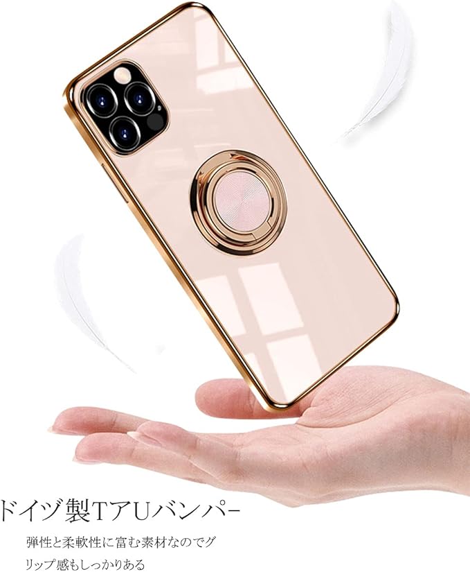 iPhone 12 Pro Max 用 ケース リング付き 衝撃吸収 カメラ保護 滑り止め、軽い、TPU アイフォン 12 Pro Max 用ケース 携帯カバー スタンド機能(iphone12pro max 用ケース ライトピンク)