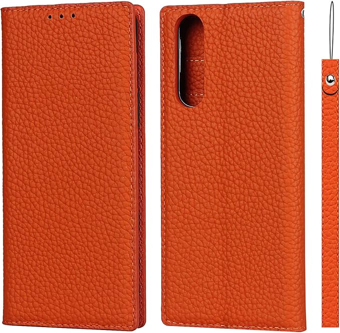 Sony Xperia 5 II SO-52A ケース手帳型 Xperia5 II SOG02 携帯カバー エクスペリア5 II ケース Pelanty 牛革製品 本革レザー 財布型カバー カード収納 スタンド機能 内蔵マグネット 手作り柔らかい スマホケース ストラップ付 ヘッドフォンケーブル 耐衝撃 [6色選択] オレンジ