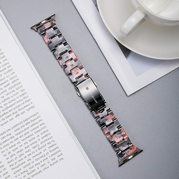 コンパチブルApple Watch バンド38mm/40mm/41mm/42mm 樹脂ベルト コンパチブル アップルウォッチ 交換ストラップ コンパチブル iWatchシリーズ10/9/8/7/6/5/4/3/2/1/SE/Ultra レディースメンズ 全14色(黒い花)