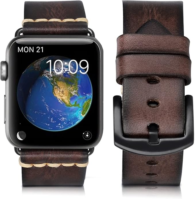 ファッショナブルなデザイン:アップルの時計ストラップは、優れた職人技、ファッショナブルな革のスタイル、陽極酸化処理された黒いステンレス鋼のバックル、シームレスなクラシックなステッチを採用しています。