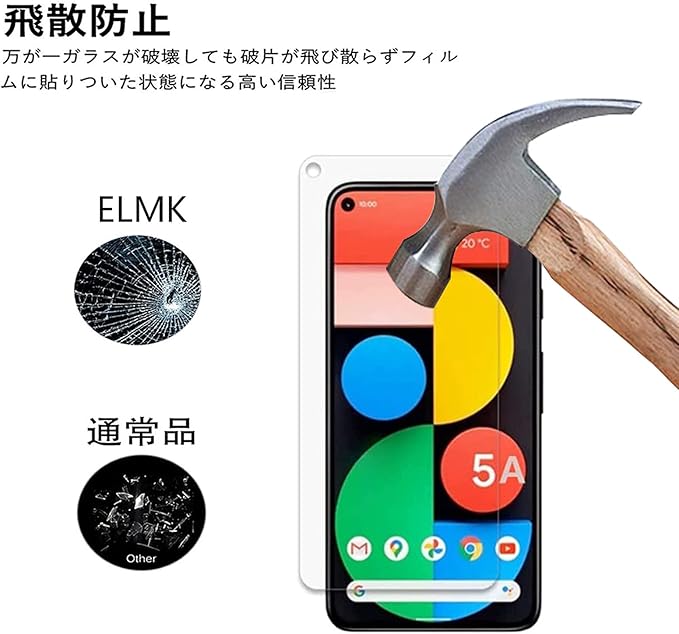 【2枚セット】For Google Pixel 5a ガラスフィルム グーグル ピクセル 5a 液晶保護強化ガラスフィルム 【ELMK】日本製素材旭硝子製・高硬度9H ・高透過率・耐衝撃・防塵・飛散防止・指紋防止・画面鮮やか高精細・貼り付け簡単 Pixel 5a 対応