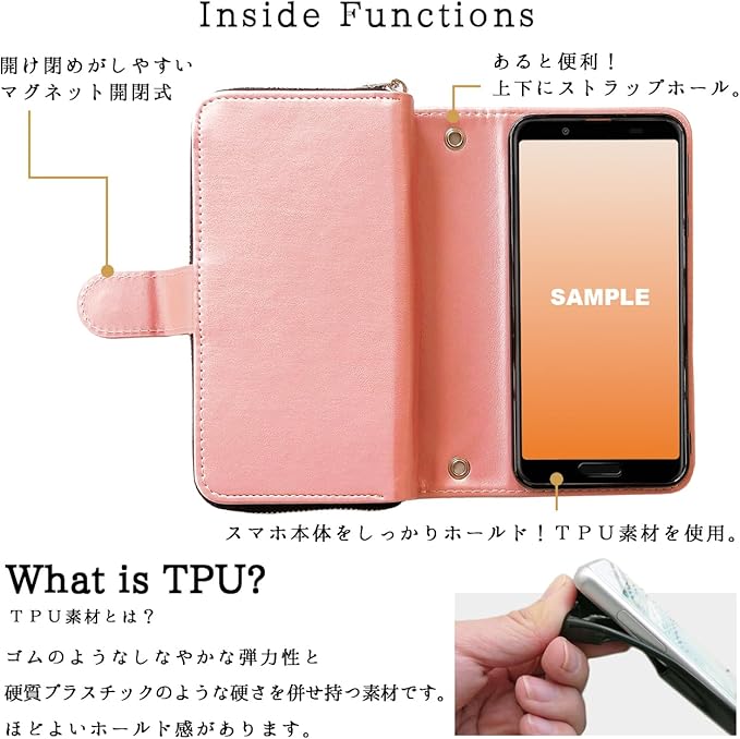 【ミニマリストのための財布機能が付いた手帳型ケース】小銭入れ、紙幣も折って入れられるお札入れとして、ちょっとした現金が必要な場面に対応。カード収納ポケットも付いて、カード決済、スマホ決済、両方使えて便利。小さい財布付きスマホケースでお支払いをよりスマートに。