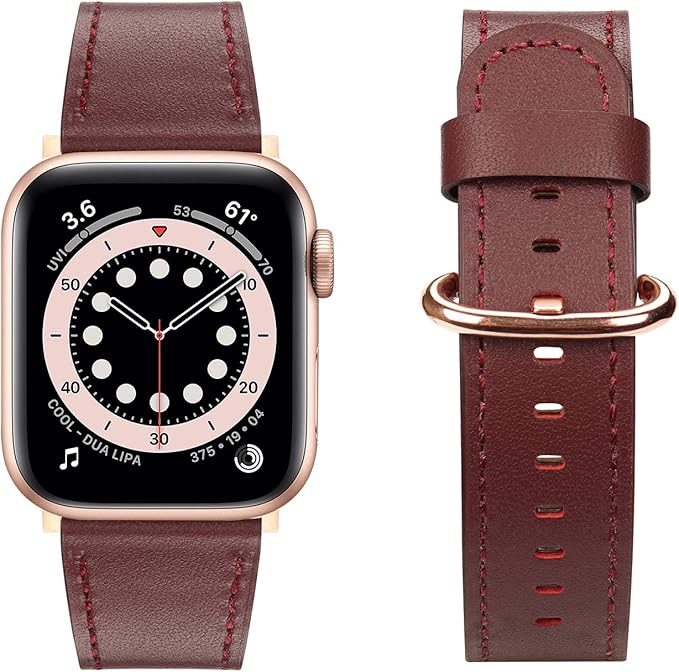 コンパチブル Apple Watch バンド 49mm 45mm 44mm 42mm、本革の女性用交換用ストラップはApple Watch Ultra2 Ultra シリーズ9 8 7 6 5 4 3 2 1 SE に対応 (ワインレッド)