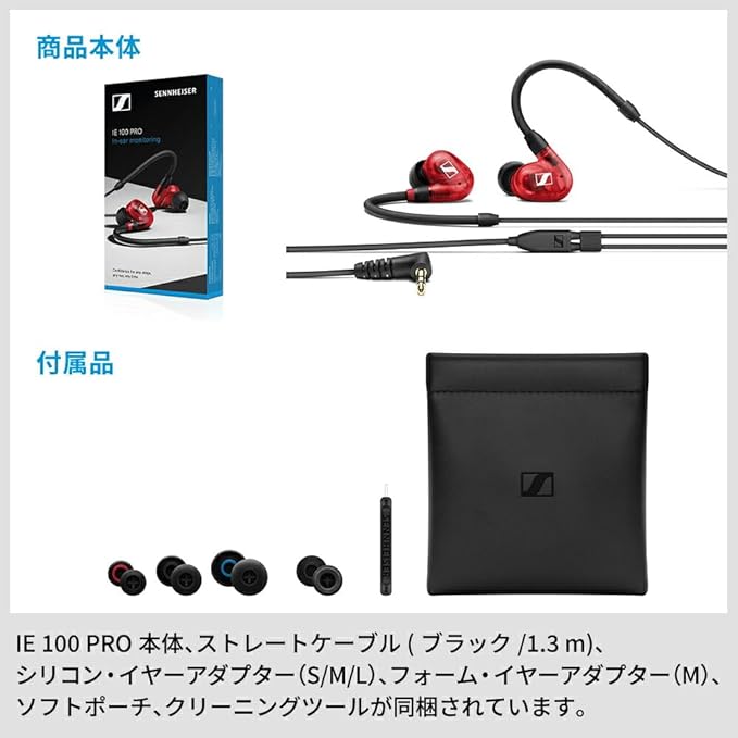 ゼンハイザー(Sennheiser) IE 100 PRO RED プロ用モニタリングイヤホン 赤 【国内正規品】 508942 カナル型 有線イヤホン a
