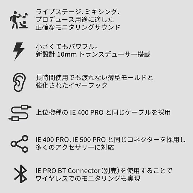 上位機種のIE 400 PROやIE 500 PROと同じコネクターを採用